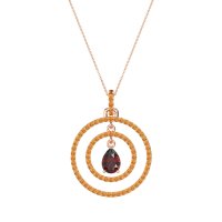 This Garnet and Citrine Necklace is casted in 14K Rose Gold. This Women’s Halo necklace features exceptionally fine gemstones, on par with those found in the world's most exclusive boutiques and among the top 10% available globally. Luminous Pendant Showcasing A Pear-shaped Center Stone Embraced By Two Concentric Halos Of Shimmering Accents. This necklace comes with a complimentary 18-inch chain. Enjoy the confidence of our 30-day, stress-free return policy—with return shipping fully covered. Each piece is also accompanied by a Lifetime Warranty, ensuring lasting beauty and peace of mind.