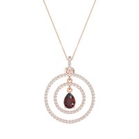 This Garnet and Lab Diamond Necklace is casted in 14K Rose Gold. This Women’s Halo necklace features exceptionally fine gemstones, on par with those found in the world's most exclusive boutiques and among the top 10% available globally. Luminous Pendant Showcasing A Pear-shaped Center Stone Embraced By Two Concentric Halos Of Shimmering Accents. This necklace comes with a complimentary 18-inch chain. Enjoy the confidence of our 30-day, stress-free return policy—with return shipping fully covered. Each piece is also accompanied by a Lifetime Warranty, ensuring lasting beauty and peace of mind.