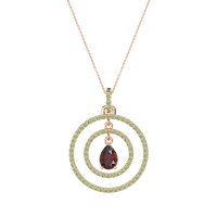 This Garnet and Peridot Necklace is casted in 14K Rose Gold. This Women’s Halo necklace features exceptionally fine gemstones, on par with those found in the world's most exclusive boutiques and among the top 10% available globally. Luminous Pendant Showcasing A Pear-shaped Center Stone Embraced By Two Concentric Halos Of Shimmering Accents. This necklace comes with a complimentary 18-inch chain. Enjoy the confidence of our 30-day, stress-free return policy—with return shipping fully covered. Each piece is also accompanied by a Lifetime Warranty, ensuring lasting beauty and peace of mind.