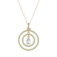 This Lab Diamond and Peridot Necklace is casted in 14K Rose Gold. This Women’s Halo necklace features exceptionally fine gemstones, on par with those found in the world's most exclusive boutiques and among the top 10% available globally. Luminous Pendant Showcasing A Pear-shaped Center Stone Embraced By Two Concentric Halos Of Shimmering Accents. This necklace comes with a complimentary 18-inch chain. Enjoy the confidence of our 30-day, stress-free return policy—with return shipping fully covered. Each piece is also accompanied by a Lifetime Warranty, ensuring lasting beauty and peace of mind.