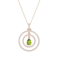 This Peridot and Lab Diamond Necklace is casted in 14K Rose Gold. This Women’s Halo necklace features exceptionally fine gemstones, on par with those found in the world's most exclusive boutiques and among the top 10% available globally. Luminous Pendant Showcasing A Pear-shaped Center Stone Embraced By Two Concentric Halos Of Shimmering Accents. This necklace comes with a complimentary 18-inch chain. Enjoy the confidence of our 30-day, stress-free return policy—with return shipping fully covered. Each piece is also accompanied by a Lifetime Warranty, ensuring lasting beauty and peace of mind.