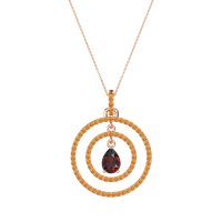 This Ruby and Citrine Necklace is casted in 14K Rose Gold. This Women’s Halo necklace features exceptionally fine gemstones, on par with those found in the world's most exclusive boutiques and among the top 10% available globally. Luminous Pendant Showcasing A Pear-shaped Center Stone Embraced By Two Concentric Halos Of Shimmering Accents. This necklace comes with a complimentary 18-inch chain. Enjoy the confidence of our 30-day, stress-free return policy—with return shipping fully covered. Each piece is also accompanied by a Lifetime Warranty, ensuring lasting beauty and peace of mind.