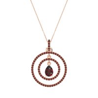 This Ruby and Garnet Necklace is casted in 14K Rose Gold. This Women’s Halo necklace features exceptionally fine gemstones, on par with those found in the world's most exclusive boutiques and among the top 10% available globally. Luminous Pendant Showcasing A Pear-shaped Center Stone Embraced By Two Concentric Halos Of Shimmering Accents. This necklace comes with a complimentary 18-inch chain. Enjoy the confidence of our 30-day, stress-free return policy—with return shipping fully covered. Each piece is also accompanied by a Lifetime Warranty, ensuring lasting beauty and peace of mind.