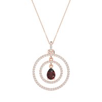 This Ruby and Lab Diamond Necklace is casted in 14K Rose Gold. This Women’s Halo necklace features exceptionally fine gemstones, on par with those found in the world's most exclusive boutiques and among the top 10% available globally. Luminous Pendant Showcasing A Pear-shaped Center Stone Embraced By Two Concentric Halos Of Shimmering Accents. This necklace comes with a complimentary 18-inch chain. Enjoy the confidence of our 30-day, stress-free return policy—with return shipping fully covered. Each piece is also accompanied by a Lifetime Warranty, ensuring lasting beauty and peace of mind.