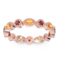 This Citrine wedding ring is casted in 14K Rose Gold and set with fine quality Citrine and Garnet. All of the gemstones we use are of the top 10% available, those found in fine quality boutiques across the world. This Citrine wedding band can also be added to your collection of minimalist Citrine rings. This Band Features Small Round Brilliants Gems Set in A Vintage Eternity Ring with Milgrain Accents Around The Entire Shank. Customize And Build Your Own Birthstone Ring By Selecting The Gems And Metals Of Your Choice. Free shipping, returns, resizing, and a lifetime warranty ensure you love your purchase.