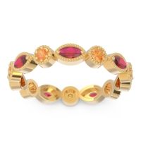 This Ruby wedding ring is casted in 14k Yellow Gold and set with fine quality Ruby and Citrine. All of the gemstones we use are of the top 10% available, those found in fine quality boutiques across the world. This Ruby wedding band can also be added to your collection of minimalist Ruby rings. This Band Features Small Round Brilliants Gems Set in A Vintage Eternity Ring with Milgrain Accents Around The Entire Shank. Customize And Build Your Own Birthstone Ring By Selecting The Gems And Metals Of Your Choice. Free shipping, returns, resizing, and a lifetime warranty ensure you love your purchase.