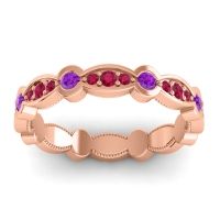 This Ruby wedding ring is casted in 14K Rose Gold and set with fine quality Ruby and Amethyst. All of the gemstones we use are of the top 10% available, those found in fine quality boutiques across the world. This Ruby wedding band can also be added to your collection of minimalist Ruby rings. This Elegant Band Uses Art Deco Motifs To Create A Timeless Look. Your Round Brilliant Gems Alternate Between A Bezel Setting And Sets Of Shared Pave. Free shipping, returns, resizing, and a lifetime warranty ensure you love your purchase.