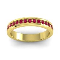 This Ruby wedding ring is set with AAAA Ruby, amongst the top 10% of material available. This ring can be casted in your choice of 9 metals. Ruby rings can be worn as gemstone wedding rings, or can even be stacked with your other gemstone rings. This Design Is A Modern interpretation On The Eternity Band. Your Round Colored Stones Are Set in A 2 Prong Shared Setting in Wells That Take The Shape Of The Gems. The Flat Band Adds A Pleasant Contrast To The Brilliance Of Your Gems. Choose from a variety of gems and metals to make truly unique custom rings! Free shipping, returns, resizing, and a lifetime warranty make choosing this product easy.