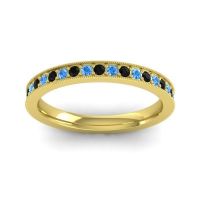 This Black Onyx wedding ring is casted in 18k Yellow Gold and set with fine quality Black Onyx and Swiss Blue Topaz. All of the gemstones we use are of the top 10% available, those found in fine quality boutiques across the world. This Black Onyx wedding band can also be added to your collection of minimalist Black Onyx rings. This Classic Band Is An Essential For Any Collection with All The Elements That Make A Timeless Piece Of Jewelry. Your Round Colored Stones Are Channel Set Around An Eternity Band with A Row Of Milgrain Accents. Free shipping, returns, resizing, and a lifetime warranty ensure you love your purchase.