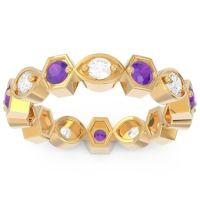 This Lab Diamond wedding ring is casted in 14k Yellow Gold and set with fine quality Lab Diamond and Amethyst. All of the gemstones we use are of the top 10% available, those found in fine quality boutiques across the world. This Lab Diamond wedding band can also be added to your collection of minimalist Lab Diamond rings. This Band Features Small Round Brilliants Gems Set in A Vintage Eternity Ring with Milgrain Accents Around The Entire Shank. Free shipping, returns, resizing, and a lifetime warranty ensure you love your purchase.