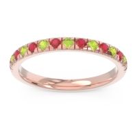 This Peridot wedding ring is casted in 18K Rose Gold and set with fine quality Peridot and Ruby. All of the gemstones we use are of the top 10% available, those found in fine quality boutiques across the world. This Peridot wedding band can also be added to your collection of minimalist Peridot rings. This Ring Features Round Brilliant Gems in A Scalloped Prong Eternity Setting. Customize And Build Your Own Gemstone Ring By Selecting The Gems And Metals Of Your Choice. Free shipping, returns, resizing, and a lifetime warranty ensure you love your purchase.