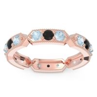 This Aquamarine wedding ring is casted in 18K Rose Gold and set with fine quality Aquamarine and Black Onyx. All of the gemstones we use are of the top 10% available, those found in fine quality boutiques across the world. This Aquamarine wedding band can also be added to your collection of minimalist Aquamarine rings. This Band Features Sets Of Three Princess Cut Gems Set in An Eternity Ring with Milgrain Accents Around The Entire Shank. Free shipping, returns, resizing, and a lifetime warranty ensure you love your purchase.