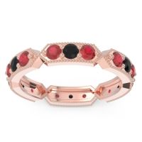 This Ruby wedding ring is casted in 18K Rose Gold and set with fine quality Ruby and Black Onyx. All of the gemstones we use are of the top 10% available, those found in fine quality boutiques across the world. This Ruby wedding band can also be added to your collection of minimalist Ruby rings. This Band Features Sets Of Three Princess Cut Gems Set in An Eternity Ring with Milgrain Accents Around The Entire Shank. Free shipping, returns, resizing, and a lifetime warranty ensure you love your purchase.