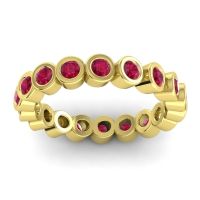 This Ruby wedding ring is set with AAAA Ruby, amongst the top 10% of material available. This ring can be casted in your choice of 9 metals. Ruby rings can be worn as gemstone wedding rings, or can even be stacked with your other gemstone rings. This Stylish Design Is Great Alternative Look From The Traditional Eternity Band. Your Round Colored Stones Sit in Bezel Settings At A Slight Angle Creating A Sense Of Motion with The Ring. Choose from a variety of gems and metals to make truly unique custom rings! Free shipping, returns, resizing, and a lifetime warranty make choosing this product easy.