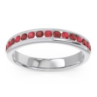 This Ruby wedding ring is casted in Palladium and set with fine quality Ruby and Garnet. All of the gemstones we use are of the top 10% available, those found in fine quality boutiques across the world. This Ruby wedding band can also be added to your collection of minimalist Ruby rings. This Ring Features Round Brilliant Gems Channel Set in A Rounded Band All The Way Around The Shank in An Eternity Setting. Free shipping, returns, resizing, and a lifetime warranty ensure you love your purchase.
