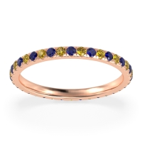 This Blue Sapphire wedding ring is casted in 14K Rose Gold and set with fine quality Blue Sapphire and Citrine. All of the gemstones we use are of the top 10% available, those found in fine quality boutiques across the world. This Blue Sapphire wedding band can also be added to your collection of minimalist Blue Sapphire rings. This Classic Eternity Band Effortlessly Elevates Any Finger, Whether Worn Alone Or with Other Rings. Free shipping, returns, resizing, and a lifetime warranty ensure you love your purchase.