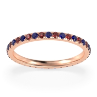 This Blue Sapphire wedding ring is casted in 18K Rose Gold and set with fine quality Blue Sapphire and Ruby. All of the gemstones we use are of the top 10% available, those found in fine quality boutiques across the world. This Blue Sapphire wedding band can also be added to your collection of minimalist Blue Sapphire rings. This Classic Eternity Band Effortlessly Elevates Any Finger, Whether Worn Alone Or with Other Rings. Free shipping, returns, resizing, and a lifetime warranty ensure you love your purchase.