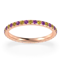 This Citrine wedding ring is casted in 14K Rose Gold and set with fine quality Citrine and Amethyst. All of the gemstones we use are of the top 10% available, those found in fine quality boutiques across the world. This Citrine wedding band can also be added to your collection of minimalist Citrine rings. This Classic Eternity Band Effortlessly Elevates Any Finger, Whether Worn Alone Or with Other Rings. Free shipping, returns, resizing, and a lifetime warranty ensure you love your purchase.