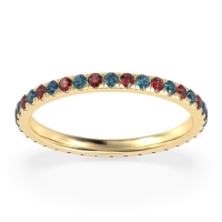 This London Blue Topaz wedding ring is casted in 18k Yellow Gold and set with fine quality London Blue Topaz and Ruby. All of the gemstones we use are of the top 10% available, those found in fine quality boutiques across the world. This London Blue Topaz wedding band can also be added to your collection of minimalist London Blue Topaz rings. This Classic Eternity Band Effortlessly Elevates Any Finger, Whether Worn Alone Or with Other Rings. Free shipping, returns, resizing, and a lifetime warranty ensure you love your purchase.