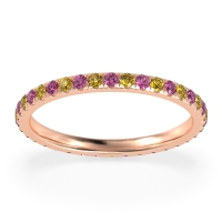 This Pink Tourmaline wedding ring is casted in 18K Rose Gold and set with fine quality Pink Tourmaline and Citrine. All of the gemstones we use are of the top 10% available, those found in fine quality boutiques across the world. This Pink Tourmaline wedding band can also be added to your collection of minimalist Pink Tourmaline rings. This Classic Eternity Band Effortlessly Elevates Any Finger, Whether Worn Alone Or with Other Rings. Free shipping, returns, resizing, and a lifetime warranty ensure you love your purchase.