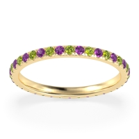 This Peridot wedding ring is casted in 14k Yellow Gold and set with fine quality Peridot and Amethyst. All of the gemstones we use are of the top 10% available, those found in fine quality boutiques across the world. This Peridot wedding band can also be added to your collection of minimalist Peridot rings. This Classic Eternity Band Effortlessly Elevates Any Finger, Whether Worn Alone Or with Other Rings. Free shipping, returns, resizing, and a lifetime warranty ensure you love your purchase.