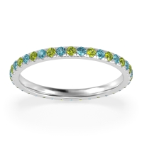 This Peridot wedding ring is casted in 18k White Gold and set with fine quality Peridot and Swiss Blue Topaz. All of the gemstones we use are of the top 10% available, those found in fine quality boutiques across the world. This Peridot wedding band can also be added to your collection of minimalist Peridot rings. This Classic Eternity Band Effortlessly Elevates Any Finger, Whether Worn Alone Or with Other Rings. Free shipping, returns, resizing, and a lifetime warranty ensure you love your purchase.