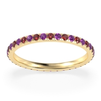 This Ruby wedding ring is casted in 18k Yellow Gold and set with fine quality Ruby and Amethyst. All of the gemstones we use are of the top 10% available, those found in fine quality boutiques across the world. This Ruby wedding band can also be added to your collection of minimalist Ruby rings. This Classic Eternity Band Effortlessly Elevates Any Finger, Whether Worn Alone Or with Other Rings. Free shipping, returns, resizing, and a lifetime warranty ensure you love your purchase.