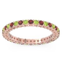 This Garnet wedding ring is casted in 14K Rose Gold and set with fine quality Garnet and Peridot. All of the gemstones we use are of the top 10% available, those found in fine quality boutiques across the world. This Garnet wedding band can also be added to your collection of minimalist Garnet rings. This Band Features Small Round Brilliant Gems Set in An Eternity Ring Around The Entire Shank. Free shipping, returns, resizing, and a lifetime warranty ensure you love your purchase.