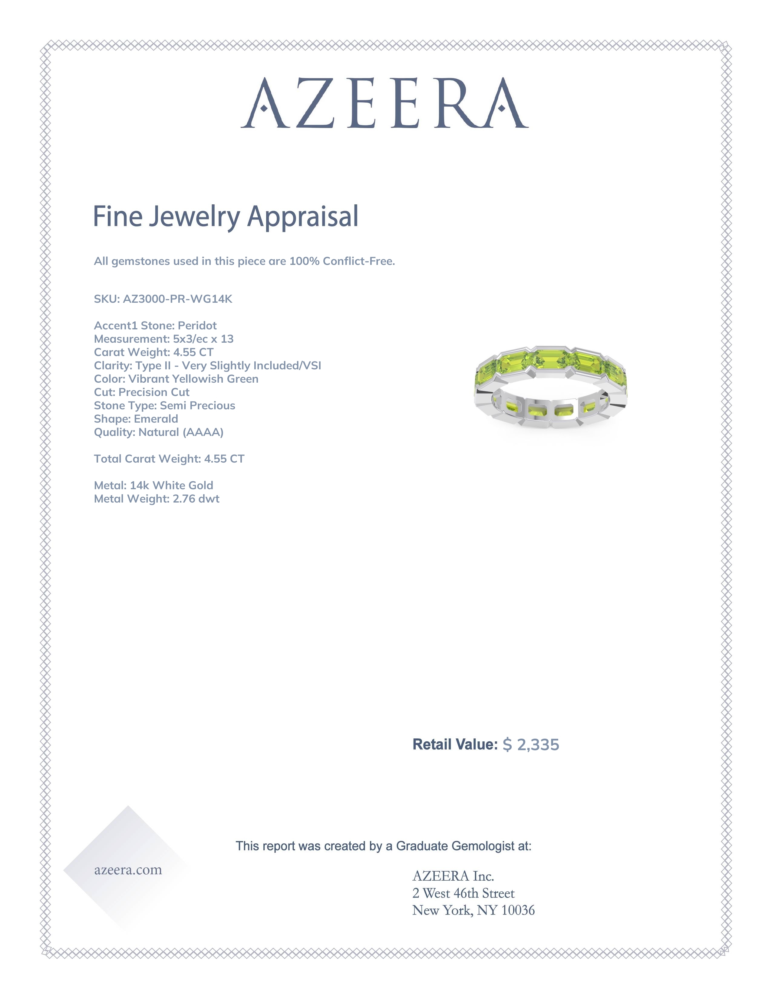 This Peridot wedding ring is set with AAAA Peridot, amongst the top 10% of material available. This ring can be casted in your choice of 9 metals. Peridot rings can be worn as gemstone wedding rings, or can even be stacked with your other gemstone rings. This Band Features Small Emerald Cut Gems Bar Set in An Eternity Ring Around The Entire Shank. Choose from a variety of gems and metals to make truly unique custom rings! Free shipping, returns, resizing, and a lifetime warranty make choosing this product easy.