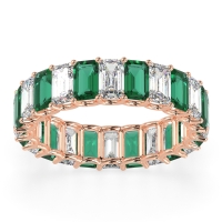This Diamond wedding ring is casted in 14K Rose Gold and set with fine quality Diamond and Emerald. All of the gemstones we use are of the top 10% available, those found in fine quality boutiques across the world. This Diamond wedding band can also be added to your collection of minimalist Diamond rings. This Classic Eternity Ring Features An Endless Circle Of Emerald-cut Stones, Given A Modern Edge with Contemporary U-prong Settings. Free shipping, returns, resizing, and a lifetime warranty ensure you love your purchase.