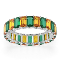 This Emerald wedding ring is casted in Platinum and set with fine quality Emerald and Citrine. All of the gemstones we use are of the top 10% available, those found in fine quality boutiques across the world. This Emerald wedding band can also be added to your collection of minimalist Emerald rings. This Classic Eternity Ring Features An Endless Circle Of Emerald-cut Stones, Given A Modern Edge with Contemporary U-prong Settings. Free shipping, returns, resizing, and a lifetime warranty ensure you love your purchase.