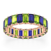 This Peridot wedding ring is casted in 14K Rose Gold and set with fine quality Peridot and Blue Sapphire. All of the gemstones we use are of the top 10% available, those found in fine quality boutiques across the world. This Peridot wedding band can also be added to your collection of minimalist Peridot rings. This Classic Eternity Ring Features An Endless Circle Of Emerald-cut Stones, Given A Modern Edge with Contemporary U-prong Settings. Free shipping, returns, resizing, and a lifetime warranty ensure you love your purchase.