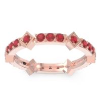 This Ruby wedding ring is set with AAAA Ruby, amongst the top 10% of material available. This ring can be casted in your choice of 9 metals. Ruby rings can be worn as gemstone wedding rings, or can even be stacked with your other gemstone rings. This Band Features Small Round Brilliants Gems Set in An Eternity Ring Accented with Geometric Patterns Around The Shank. Choose from a variety of gems and metals to make truly unique custom rings! Free shipping, returns, resizing, and a lifetime warranty make choosing this product easy.