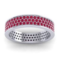 This Ruby wedding ring is set with AAAA Ruby, amongst the top 10% of material available. This ring can be casted in your choice of 9 metals. Ruby rings can be worn as gemstone wedding rings, or can even be stacked with your other gemstone rings. This Lavish Band Is Perfect For Those Who Want To Make A Statement And Show Off. Your Round Brilliant Gems Sit in 3 Rows in A Shared Prong Setting Between Two Secure Walls At The Ends Of The Band. Choose from a variety of gems and metals to make truly unique custom rings! Free shipping, returns, resizing, and a lifetime warranty make choosing this product easy.