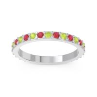This Ruby wedding ring is casted in 14k White Gold and set with fine quality Ruby and Peridot. All of the gemstones we use are of the top 10% available, those found in fine quality boutiques across the world. This Ruby wedding band can also be added to your collection of minimalist Ruby rings. This Ring Features Round Brilliant Gems in An Eternity Shared Prong Setting All The Way Around The Shank. Free shipping, returns, resizing, and a lifetime warranty ensure you love your purchase.