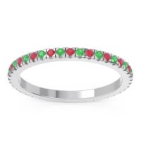 This Ruby wedding ring is casted in 18k White Gold and set with fine quality Ruby and Emerald. All of the gemstones we use are of the top 10% available, those found in fine quality boutiques across the world. This Ruby wedding band can also be added to your collection of minimalist Ruby rings. This Ring Features Round Brilliant Gems in A Slender Scalloped Prong Eternity Setting. Free shipping, returns, resizing, and a lifetime warranty ensure you love your purchase.