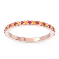 This Ruby wedding ring is casted in 14K Rose Gold and set with fine quality Ruby and Citrine. All of the gemstones we use are of the top 10% available, those found in fine quality boutiques across the world. This Ruby wedding band can also be added to your collection of minimalist Ruby rings. This Ring Features Round Brilliant Gems in A Slender Shared Scalloped Prong Eternity Setting. Free shipping, returns, resizing, and a lifetime warranty ensure you love your purchase.