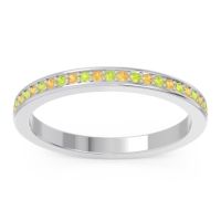This Peridot wedding ring is casted in Platinum and set with fine quality Peridot and Citrine. All of the gemstones we use are of the top 10% available, those found in fine quality boutiques across the world. This Peridot wedding band can also be added to your collection of minimalist Peridot rings. This Ring Features Round Brilliant Gems Prong Set Between Two Secure Walls All The Way Around The Shank in An Eternity Setting. Free shipping, returns, resizing, and a lifetime warranty ensure you love your purchase.