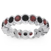 This Black Onyx wedding ring is casted in 14k White Gold and set with fine quality Black Onyx and Garnet. All of the gemstones we use are of the top 10% available, those found in fine quality boutiques across the world. This Black Onyx wedding band can also be added to your collection of minimalist Black Onyx rings. This Band Features Small Round Brilliants Gems Bar Set in An Eternity Ring with Milgrain Accents Around The Entire Shank. Free shipping, returns, resizing, and a lifetime warranty ensure you love your purchase.