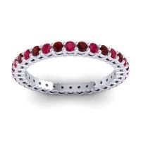 This Ruby wedding ring is casted in Palladium and set with fine quality Ruby and Garnet. All of the gemstones we use are of the top 10% available, those found in fine quality boutiques across the world. This Ruby wedding band can also be added to your collection of minimalist Ruby rings. This Classical Eternity Band It Perfect Both On It's Own Or As A Stackable. Your Round Colored Stones Are Set in A Shared 4 Prong Setting To Show Their Brilliance And Make A Statement. Free shipping, returns, resizing, and a lifetime warranty ensure you love your purchase.