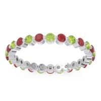 This Ruby wedding ring is casted in 14k White Gold and set with fine quality Ruby and Peridot. All of the gemstones we use are of the top 10% available, those found in fine quality boutiques across the world. This Ruby wedding band can also be added to your collection of minimalist Ruby rings. This Band Features Small Round Brilliant Gems Set in An Eternity Ring Around The Entire Shank. Free shipping, returns, resizing, and a lifetime warranty ensure you love your purchase.