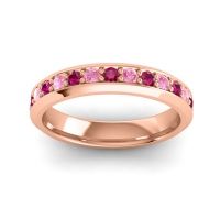 This Ruby wedding ring is casted in 14K Rose Gold and set with fine quality Ruby and Pink Tourmaline. All of the gemstones we use are of the top 10% available, those found in fine quality boutiques across the world. This Ruby wedding band can also be added to your collection of minimalist Ruby rings. This Band Uses Simple Design Elements To Create A Stylish Design. Your Round Colored Stones Sit in A Shared 4 Prong Setting Between Wide Walls That Taper Towards The Gems. Free shipping, returns, resizing, and a lifetime warranty ensure you love your purchase.