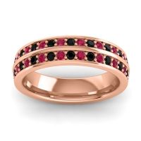 This Ruby wedding ring is casted in 18K Rose Gold and set with fine quality Ruby and Black Onyx. All of the gemstones we use are of the top 10% available, those found in fine quality boutiques across the world. This Ruby wedding band can also be added to your collection of minimalist Ruby rings. This Stunning Band Is Both Functional And Stylish. Your Round Colored Stones Sit in A 4 Prong Shared Setting in Rows Between Bars Of Precious Metal Appearing As Two Bands Stacked Together. Free shipping, returns, resizing, and a lifetime warranty ensure you love your purchase.