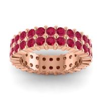This Ruby wedding ring is set with AAAA Ruby, amongst the top 10% of material available. This ring can be casted in your choice of 9 metals. Ruby rings can be worn as gemstone wedding rings, or can even be stacked with your other gemstone rings. This Bold Design Is Perfect For Making A Statement. Your Round Colored Stones Sit A Shared 4 Prong Setting in Two Rows Across The Band To Ensure That The Brilliance On Your Finger Is Seen. Choose from a variety of gems and metals to make truly unique custom rings! Free shipping, returns, resizing, and a lifetime warranty make choosing this product easy.