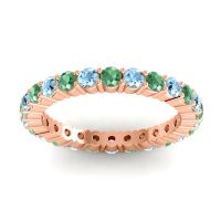 This Emerald wedding ring is casted in 18K Rose Gold and set with fine quality Emerald and Aquamarine. All of the gemstones we use are of the top 10% available, those found in fine quality boutiques across the world. This Emerald wedding band can also be added to your collection of minimalist Emerald rings. This Creative Design Utilizes The Prongs As A Design Element And Creates Columnar Forms Around The Profile. Your Round Colored Sit in A 4 Prong Setting Around The Band with The Undulating Profile Providing A Pleasant Contrast. Free shipping, returns, resizing, and a lifetime warranty ensure you love your purchase.