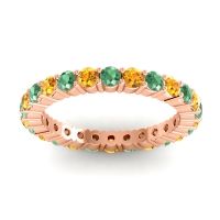 This Emerald wedding ring is casted in 14K Rose Gold and set with fine quality Emerald and Citrine. All of the gemstones we use are of the top 10% available, those found in fine quality boutiques across the world. This Emerald wedding band can also be added to your collection of minimalist Emerald rings. This Creative Design Utilizes The Prongs As A Design Element And Creates Columnar Forms Around The Profile. Your Round Colored Sit in A 4 Prong Setting Around The Band with The Undulating Profile Providing A Pleasant Contrast. Free shipping, returns, resizing, and a lifetime warranty ensure you love your purchase.