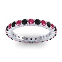 This Ruby wedding ring is casted in Palladium and set with fine quality Ruby and Black Onyx. All of the gemstones we use are of the top 10% available, those found in fine quality boutiques across the world. This Ruby wedding band can also be added to your collection of minimalist Ruby rings. This Creative Design Utilizes The Prongs As A Design Element And Creates Columnar Forms Around The Profile. Your Round Colored Sit in A 4 Prong Setting Around The Band with The Undulating Profile Providing A Pleasant Contrast. Free shipping, returns, resizing, and a lifetime warranty ensure you love your purchase.