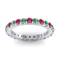 This Ruby wedding ring is casted in Platinum and set with fine quality Ruby and Emerald. All of the gemstones we use are of the top 10% available, those found in fine quality boutiques across the world. This Ruby wedding band can also be added to your collection of minimalist Ruby rings. This Creative Design Utilizes The Prongs As A Design Element And Creates Columnar Forms Around The Profile. Your Round Colored Sit in A 4 Prong Setting Around The Band with The Undulating Profile Providing A Pleasant Contrast. Free shipping, returns, resizing, and a lifetime warranty ensure you love your purchase.