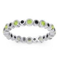 This Peridot wedding ring is casted in 14k White Gold and set with fine quality Peridot and Black Onyx. All of the gemstones we use are of the top 10% available, those found in fine quality boutiques across the world. This Peridot wedding band can also be added to your collection of minimalist Peridot rings. This Band Features Alternating Size Round Brilliant Gems individually Bezel Set in An Eternity Ring Around The Entire Shank. Free shipping, returns, resizing, and a lifetime warranty ensure you love your purchase.