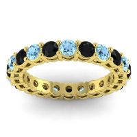 This Aquamarine wedding ring is casted in 18k Yellow Gold and set with fine quality Aquamarine and Black Onyx. All of the gemstones we use are of the top 10% available, those found in fine quality boutiques across the world. This Aquamarine wedding band can also be added to your collection of minimalist Aquamarine rings. This Eternity Band It Perfect Both On Its Own Or As A Stackable. Your Round Colored Stones Are Set in A Shared 4 Prong Setting Over Raised Baskets To Show Their Brilliance And Make A Statement. Free shipping, returns, resizing, and a lifetime warranty ensure you love your purchase.